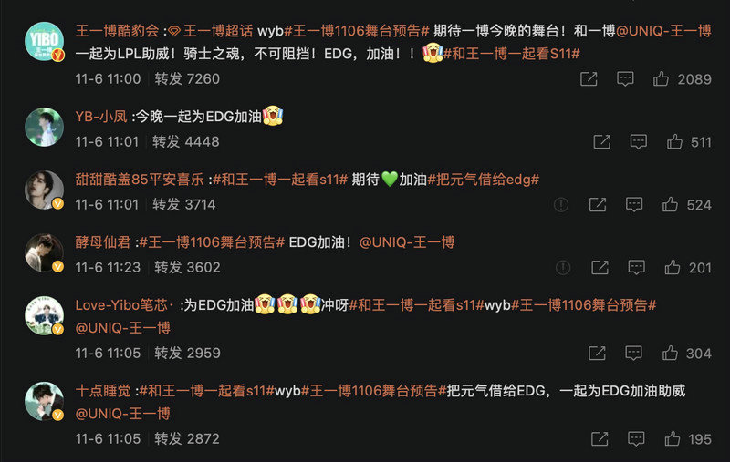 王一博S11献跳助威EDG,引发千万粉丝助威狂潮